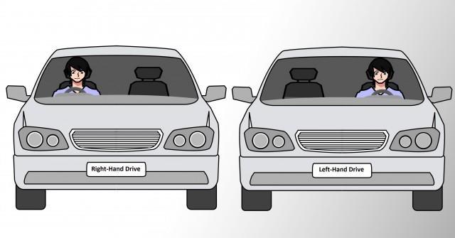 반대로 미국 같은 광대한 국가에서는 쌍두마차를 몰 때 마부가 왼쪽에 앉는 편이 오히려 편리했다는 설이 있다. 또 다른 설로는 운전자가 오른손잡이가 많기에 변속기 조작을 쉽게 하기 위해서 생겼다고도한다. 육상 트랙처럼 심장이 위치한 왼쪽으로 돌아야 심리적으로 편하다는 점도 왼쪽 운전석이 생긴 유리한 조건이다. 이 모두를 종합하여 프랑스, 독일등 여타 나라에서는 좌핸들을 채택했다.