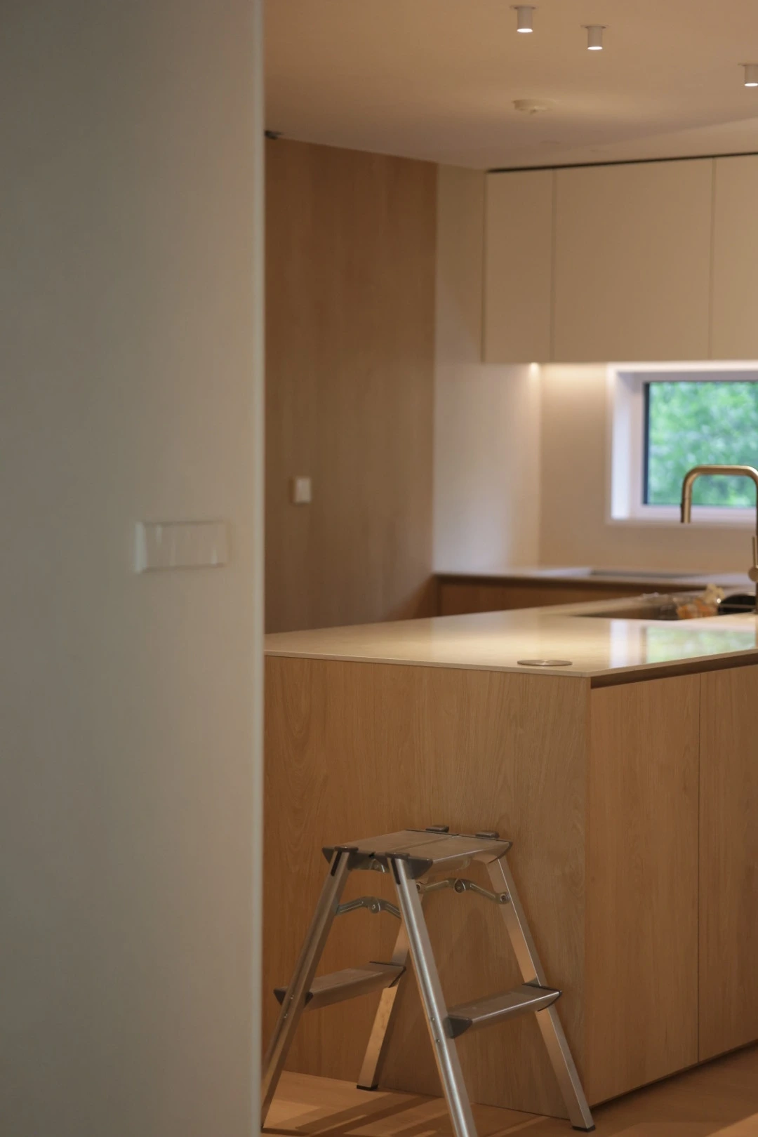 처음엔 당연히 화이트로 하려 했다. 무광 화이트, 타일과 벽지가 매끈하게 이어지는 미니멀한 톤 앤 매너. 주방은 눈에 띄지 않는 매스 한 공간이어야 한다는 게 내 오랜 취향이자, 안전한 선택이었다. 하지만 “어차피 허물 집”이라는 조건이 묘한 자유를 줬다. 다른 사람의 보편적 취향을 고려하지 않아도 되는 자유. “이참에, 우드를 한 번 써볼까?” 그래서 결국, 처음으로 ‘필름’을 허락했다. 진짜가 아니면 절대 안 된다고 여겼던 그 ‘페이크 우드 필름’을.