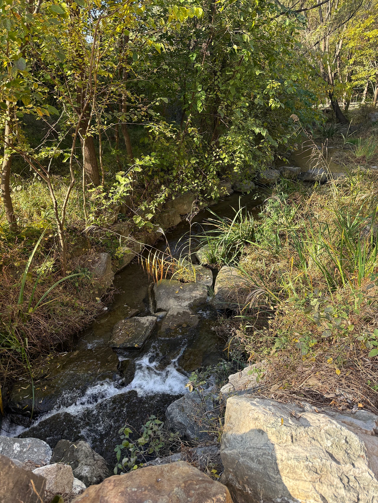 이곳은 강원도 깊은 숲과는 다르다. 사람 손이 닿는 것 같은데 그게 과하지 않다. 자연스럽고 담백하다. 관리가 드러나지 않는다. 어디선 폭포처럼 세차게 흐르다가 어디선 잔잔하게 고인다. 지하수를 끌어왔다는데, 물의 표정이 다양하다. 야생화가 점점이 피어 있어서 발견하는 기쁨도 있다.
