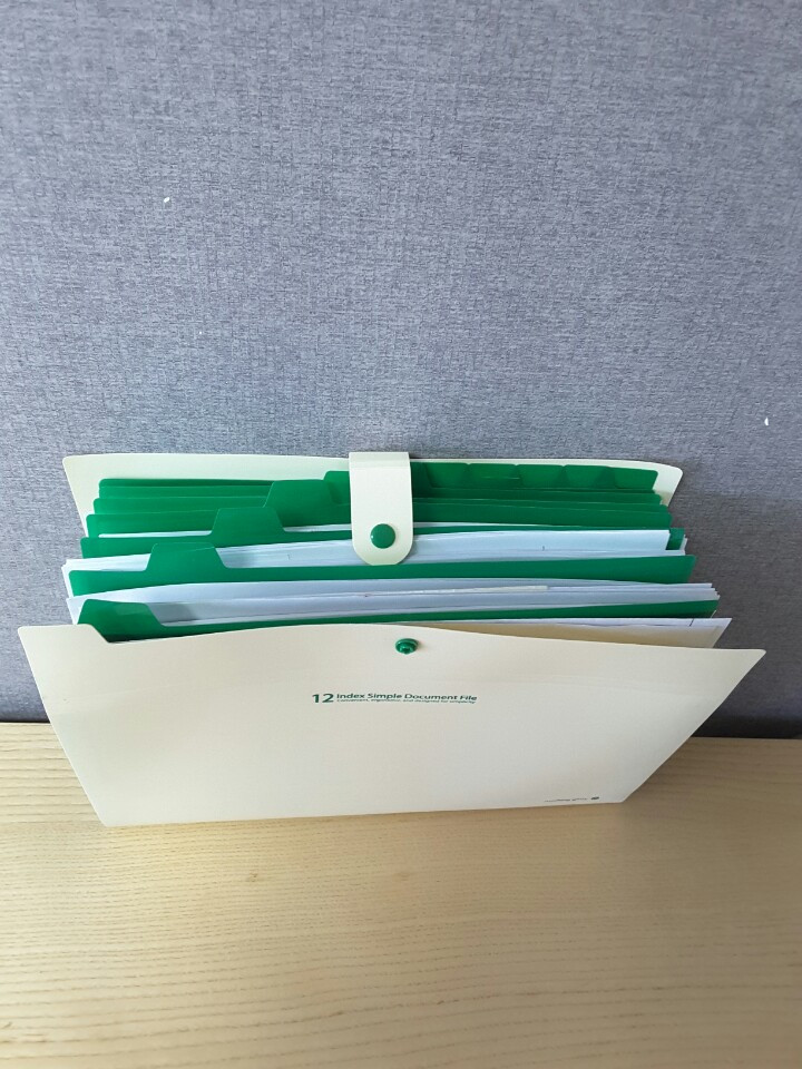 아코디언 파일함을 구입해서 정리하면 하나의 파일로 보관할 수 있어서 좋다. 이 파일함에는 절대 버려서는 안되는 중요한 서류들이 보관되어있다.