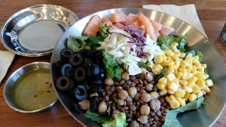 저녁 식사는 나또, 어린잎 채소 한 줌, 오렌지 1개.