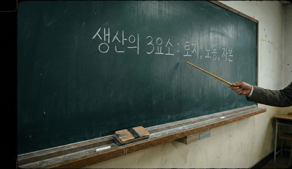 인적자본, 물적자본, 지적자본 이런 말들이 언제부턴가 사람들의 입에서 자연스레 나왔던 걸 보면, 자본의 개념이 뭔가 생산하려고 투입된 돈에서 생산을 위한 토지, 생산을 위한 노동으로 확장된 것이다. 그래서 칠판에 써 있던 생산의 3요소는 칠판에만 존재하고 현재는 모두 자본으로 대체된 걸로 봐도 괜찮을 거 같다.
