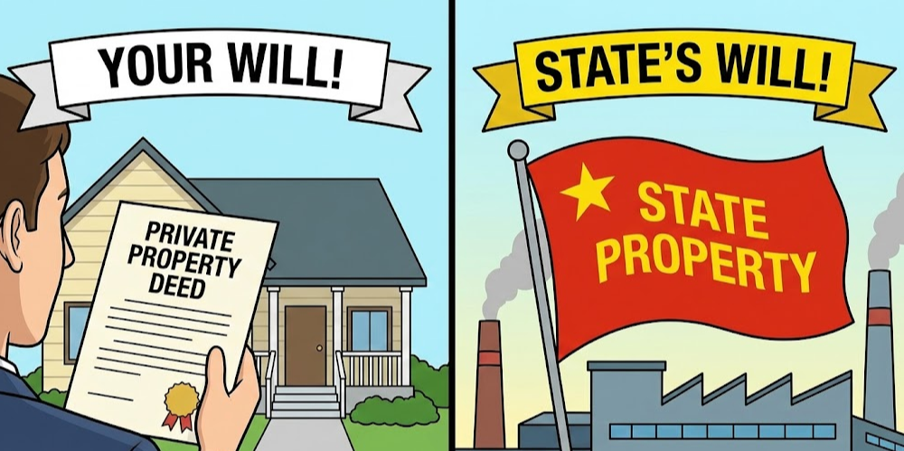 반면, 사회주의는 생산 수단을 개인이 영구 소유할 수 없고 국가(사회)가 소유해야 한다고 믿는 경제체제의 신념이다. 즉, 국가가 주인공이고 개인은 공공의 이익을 위해 뛰어야 한다.