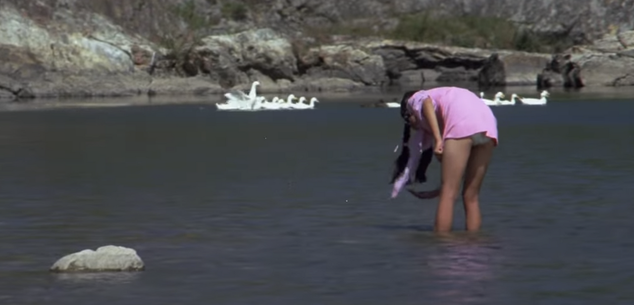 도대체 초등학교에 다니는 여자아이의 팬티를 누구에게 이토록 확실하게 보여주고 싶었던 것일까? 당시 우리나라의 영화 관람객을 생각했을 때 아마 성인 남성을 겨냥한 거였을거다. 대 놓고 로리타적 감성을 겨냥한 장면인거 같다. 이런 로리타 컴플렉스적인 시선은 여주인공을 잡는 카메라 워킹 내내 일관적이다.