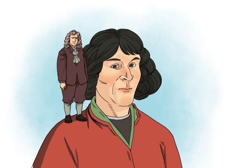 아이작 뉴턴(Isaac Newton)이 남긴 기록 가운데 내가 기억하는 유일한 것은 1675년 2월 5일, 라이벌 관계였던 로버트 훅(Robert Hooke)에게 보낸 편지에 써있다는 바로 저 문구이다.