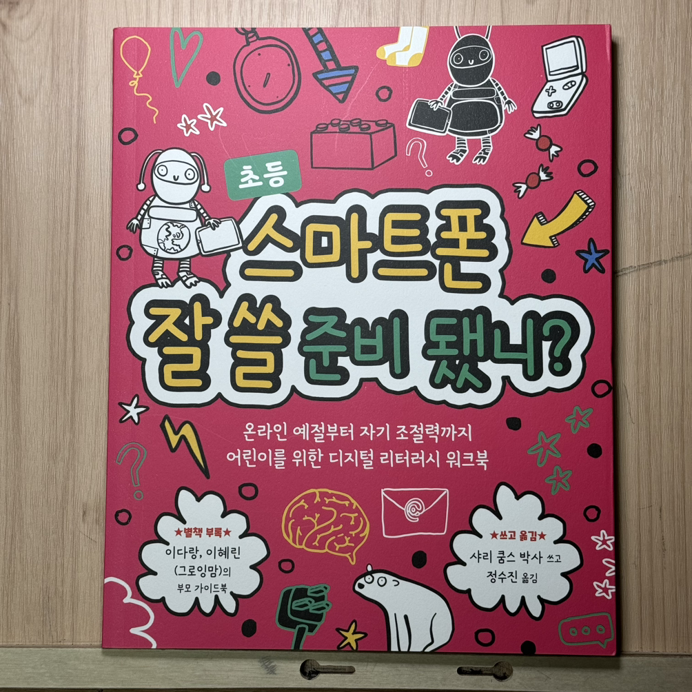 준이에게 온/오프라인 세계에 대한 개념도 심어주고자 책도 하나 구입했다. [스마트폰 잘 쓸 준비 됐니?]라는 책인데 온라인 예절부터 자기 조절력까지 어린이를 위한 디지털 리터러시 워크북이다.