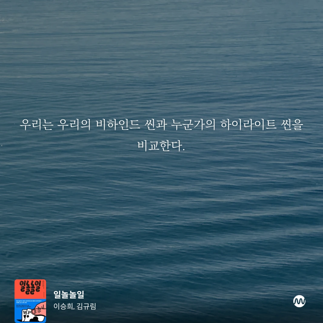 그 속에서 좋은 사람을 만나고, 그들과 풍성한 일상을 살아내는 것에 집중하자. 성공보다 삶의 관계에 의미를 두고 같이 살아가다보면 나의 일상이 다른 이들과 크게 다르지 않고, 누군가의 하이라이트가 나에게도 찾아오는 일이라는 것을 깨닫게 되겠지.