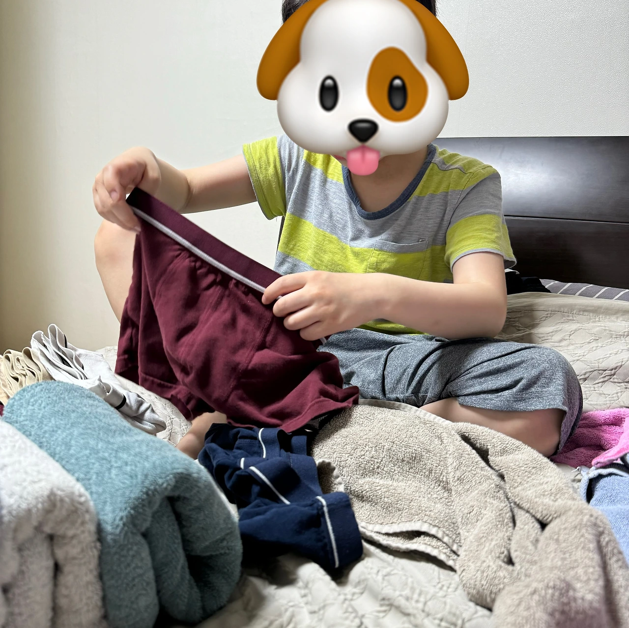 석가탄일일이었던 지난 수요일. 준이에게 밀린 공부를 하라고 하고 한참 무기력한 상태에서 침대에 누워 시간을 보내던 중 넣어둔 옷이 다 말랐다는 건조기 알람에 몸을 일으켰다. 따뜻해진 옷을 한움큼 안고 침대에 펼쳐놓고 주섬주섬 접기 시작. 영어공부를 마친 준이가 엄마 뭐하나~ 궁금해하며 방으로 왔길래 너도 너의 옷을 접고 가져다 넣으라며 일거리를 주었다.