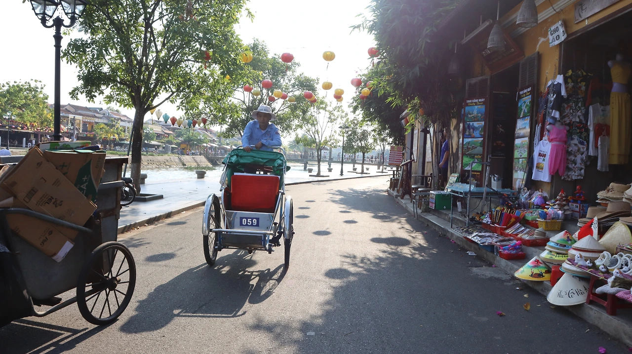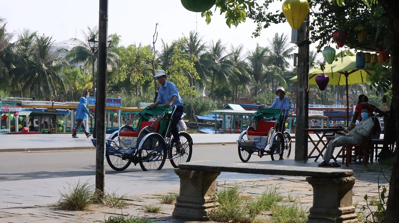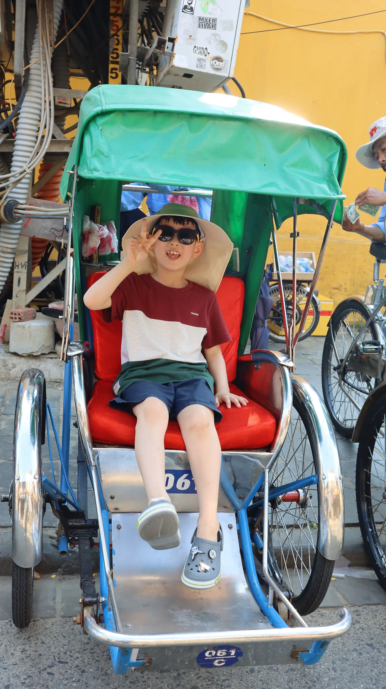 여기저기 둘러본 뒤 선택 관광으로 씨클로를 탔다. 자전거 페달을 열심히 밟아주는 고마운 분을 뒤로하고 내리쬐는 태양을 온몸으로 받으며 전통거리 골목골목을 내달린다. 사람들이 많은 곳에서는 "어이~! 어이~!"하며 길을 뚫으며 알록달록 아름다운 풍경을 눈에 담는다. 1인승이라 준이도 혼자 탑승했는데 너무 재미있었다며 스스로 즐긴 시간을 행복해 했다.