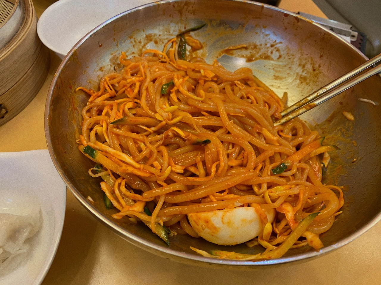기본 쫄면과 매운 쫄면 모둠 만두를 시켜서 함께 먹었다