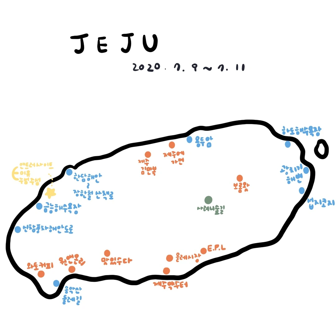 7. 10 (원앤온리 - 송악산둘레길 - 와토커피 - 신창풍차해안도로 - 금능해수욕장 - 앤트러사이트 - 미유 - 주섬주섬 - 올레시장 - 제주약수터 - 숙소)