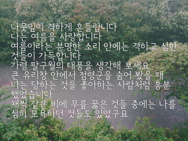 여름이라는 분명한 소리 안에는 격하고 심한 것들이 가득합니다