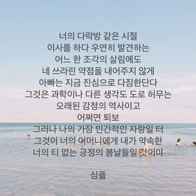 그것이 너의 어머니에게 내가 약속한 너의 티 없는 긍정의 봄날들일 것이야