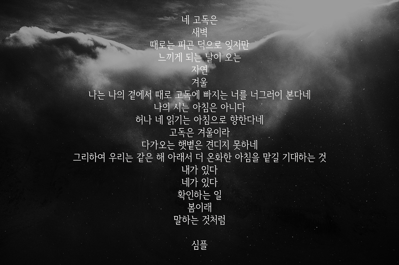 나는 나의 곁에서 때로 고독에 빠지는 너를 너그러이 본다네