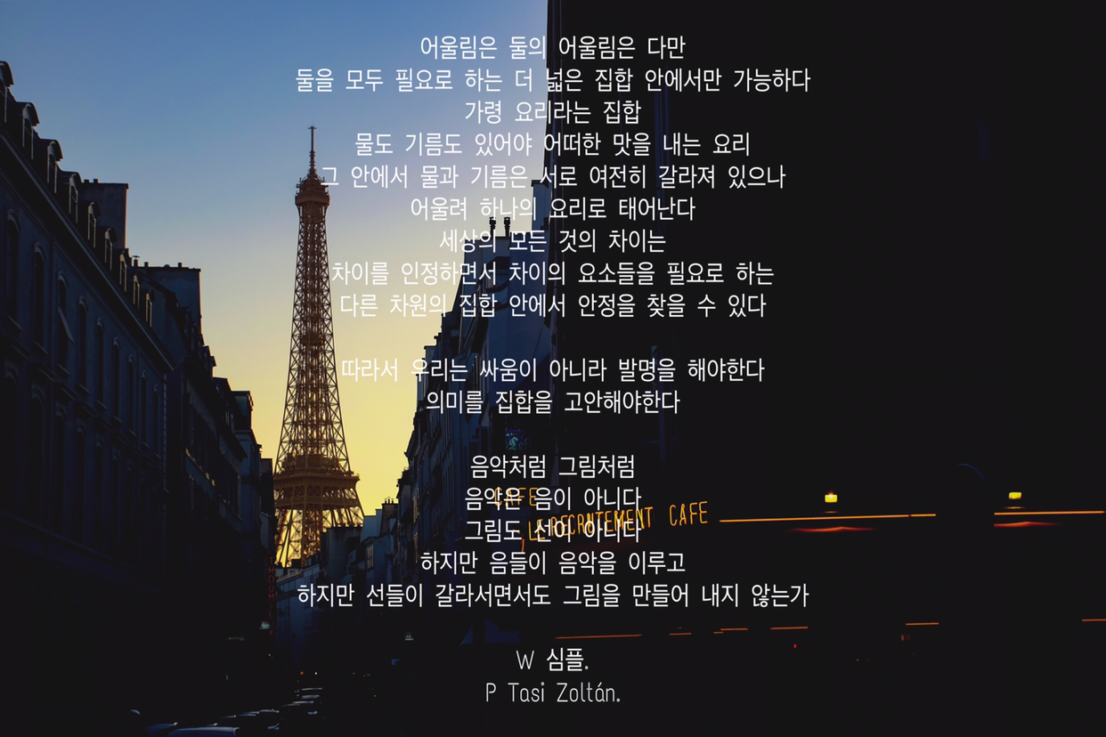 세상의 모든 것의 차이는 차이를 인정하면서 차이의 요소들을 필요로 하는 다른 차원의 집합 안에서 안정을 찾을 수 있다