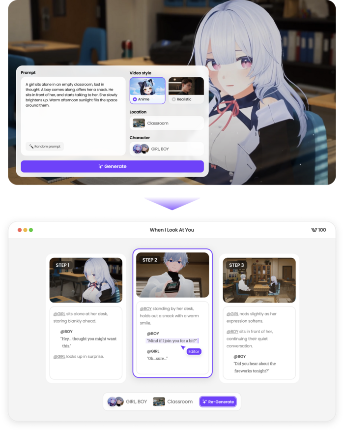 둘째, 사용자 중심의 완벽한 제어다. 배우의 연기, 카메라 연출, 조명, 배경 등을 사용자가 원하는 대로 편집할 수 있다. 3D 물리적 공간을 먼저 구축하고 개별 요소를 구현하는 방식으로 안정성과 편의성을 모두 잡았다.