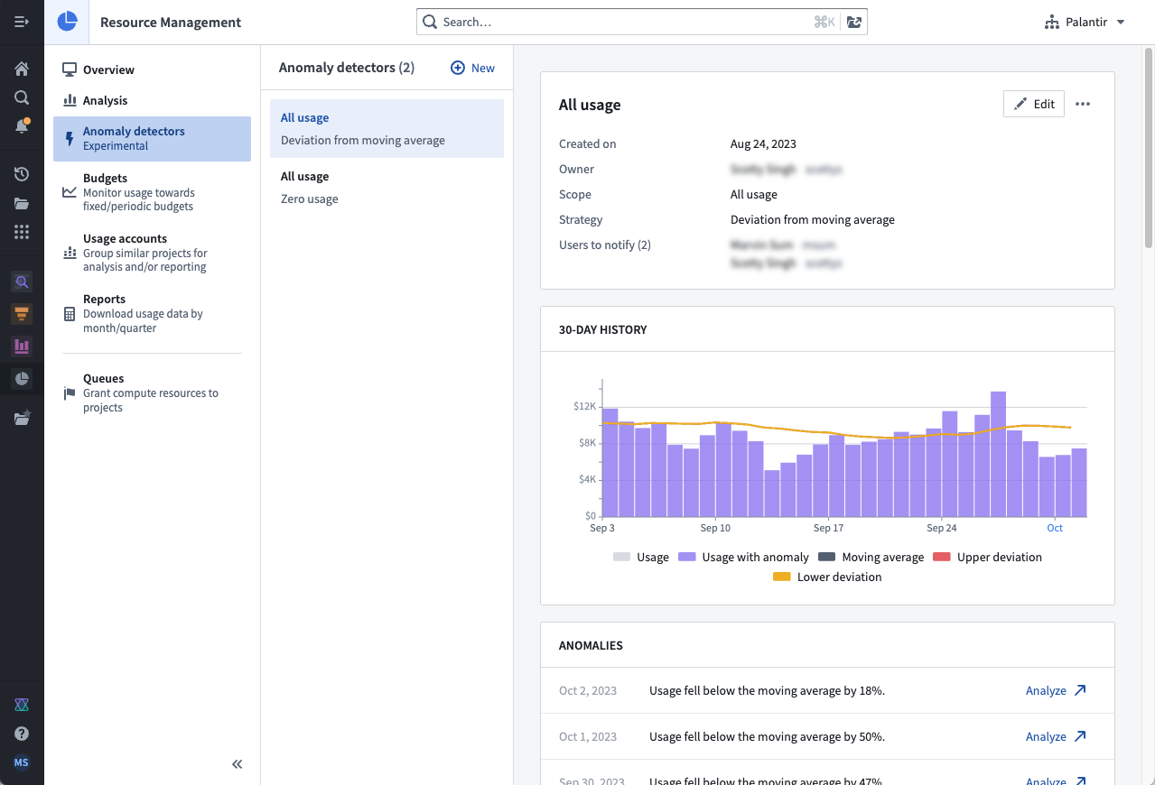 팔란티어는 방대한 데이터에서 이상 신호를 찾아내는 AI 기술도 적용하고 있습니다. 대표적인 것이 이상 탐지(Anomaly Detection) 기법입니다. 정상 범주에서 벗어나는 특이 패턴을 실시간으로 감지해 낼 수 있습니다. 이를 통해 잠재된 위험을 조기에 포착하고 대응할 수 있습니다.