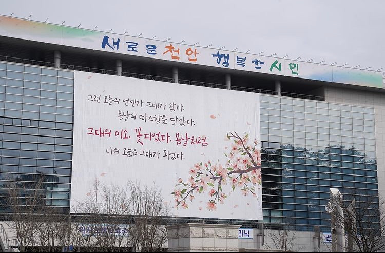 천안 시청에 시 '나의 오늘, 그대'의 일부가 발췌되어 걸리었습니다. 봄날의 벚꽃과 함께 아름다이 담아주셨습니다. 참, 감사할 따름입니다. 부디 오가는 분들에게 작은 위로와 기쁨이 되어드릴 수 있길 소망합니다.