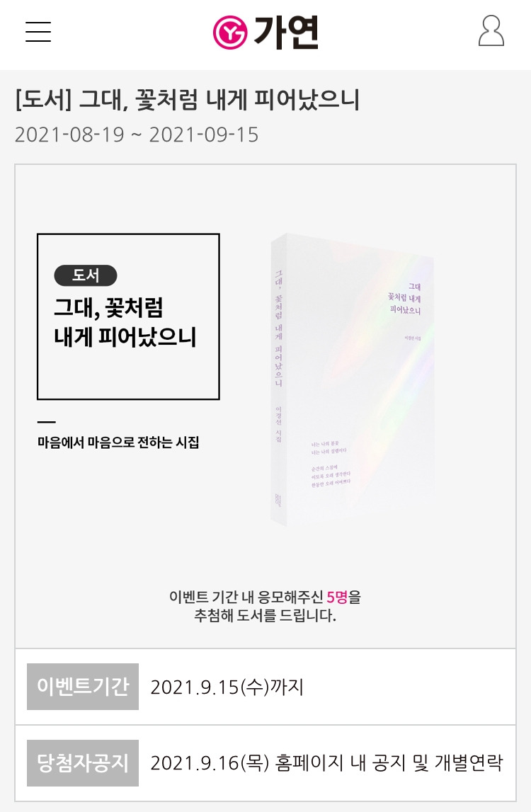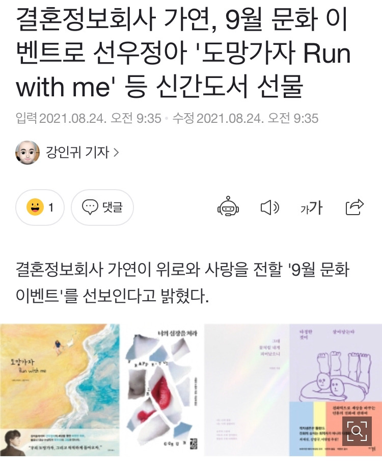결혼정보회사 <가연>의 9월 문화 이벤트 도서로