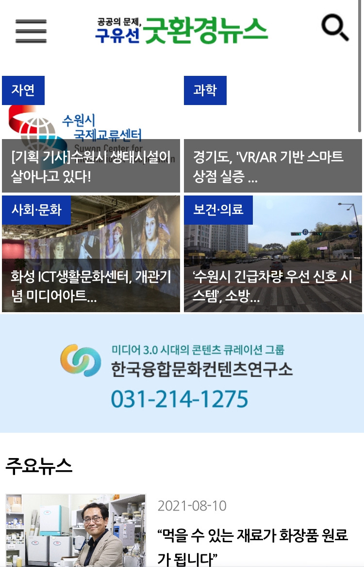 <한국융합문화콘텐츠연구소>의 '굿환경뉴스'에