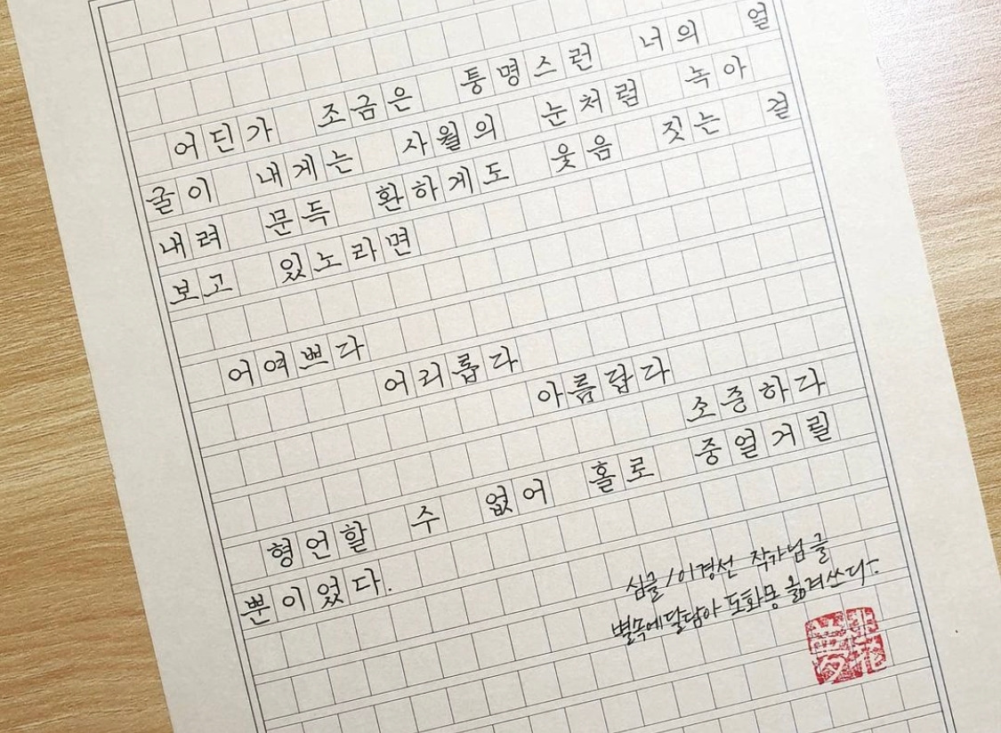 친애하는 도화몽 캘리 작가님의 작품을 소개드리려 합니다.