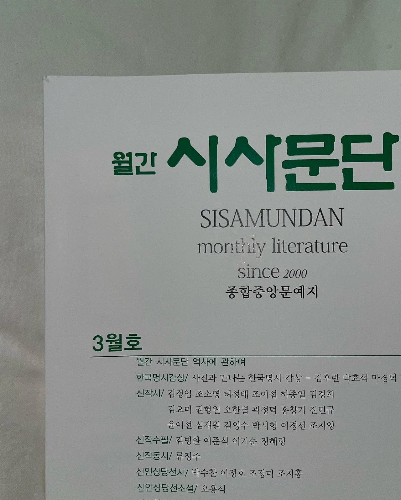 월간지 시사문단 3월호 발표 신작 시