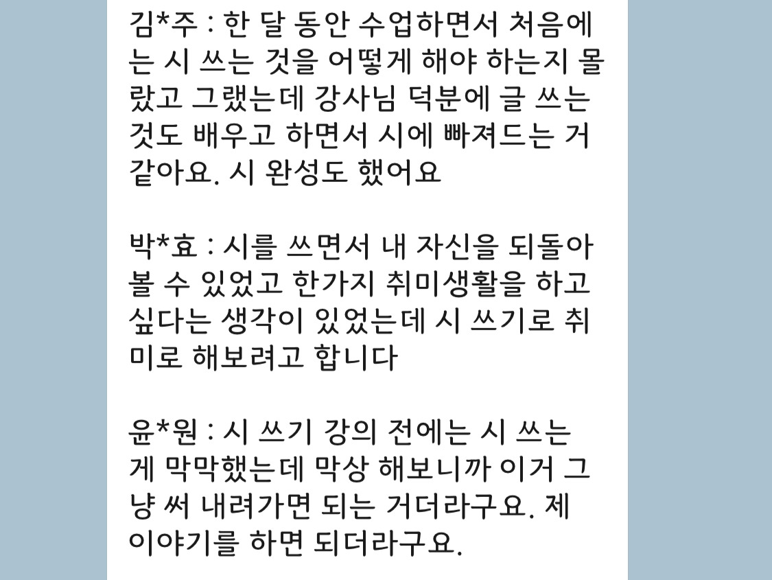 - 2기 수업 후기 나눔 & 3기 모집 중