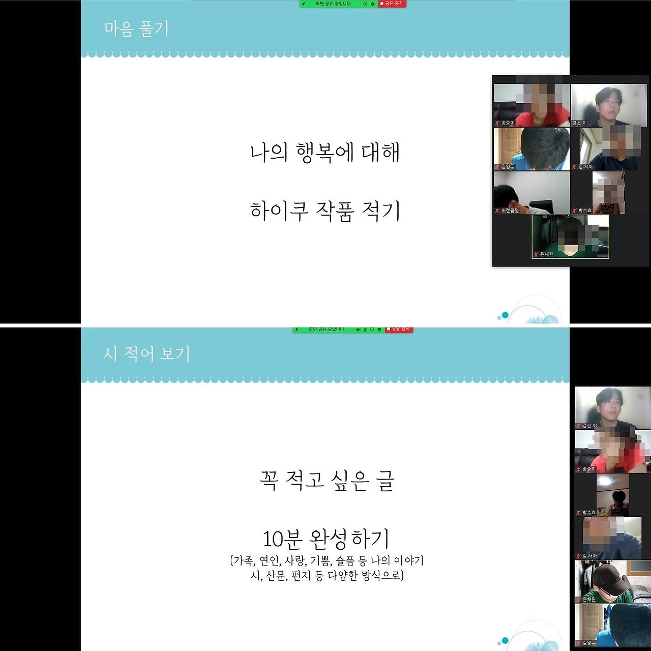 지난 유월부터 진행해온 '치유의 글쓰기' 2기 수업을 마쳤습니다. 부산 소재의 복지센터 '위캔클럽'과 함께하였습니다.