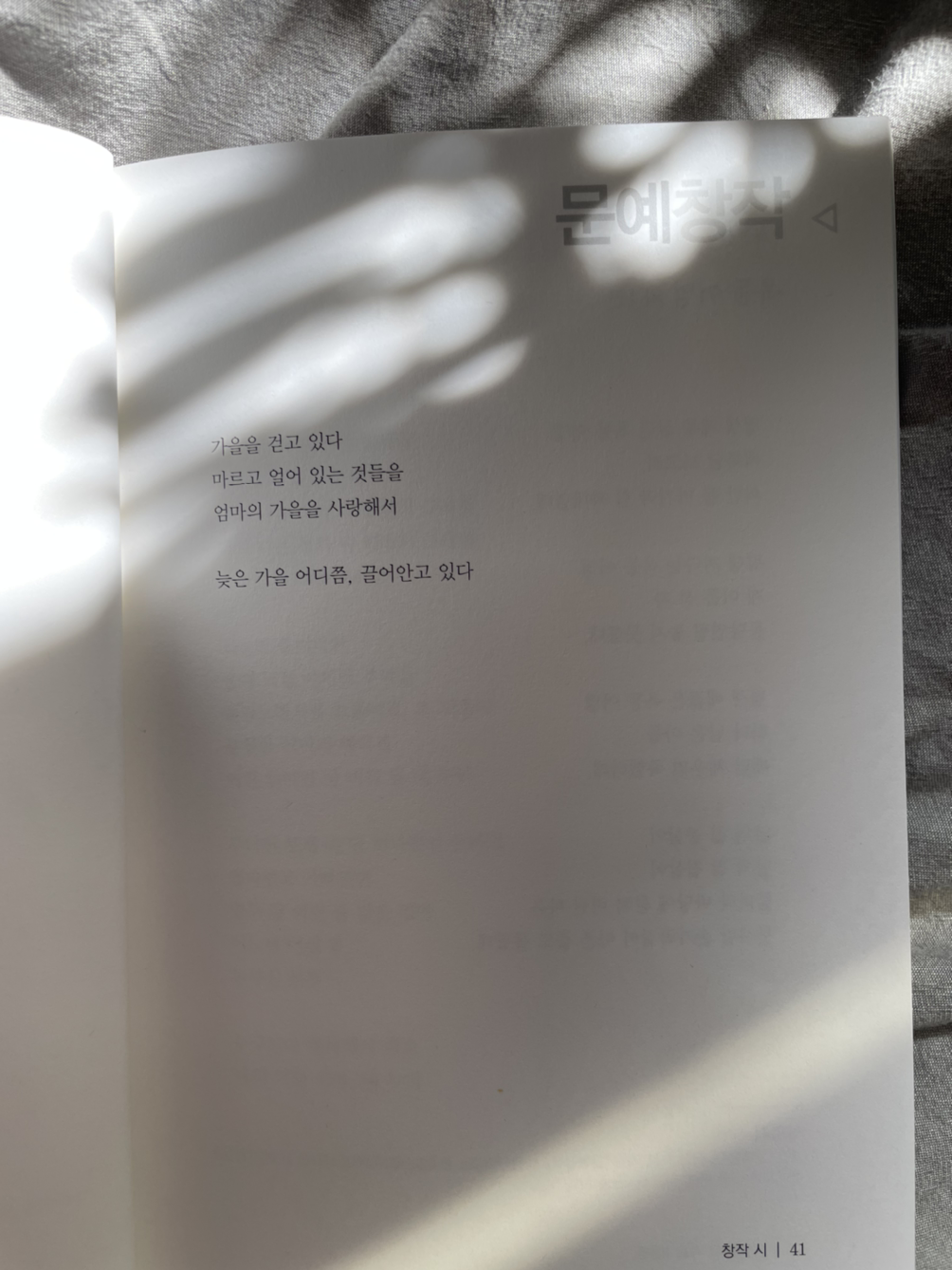 계간지 문예창작 가을호 발표 시 '계절감'