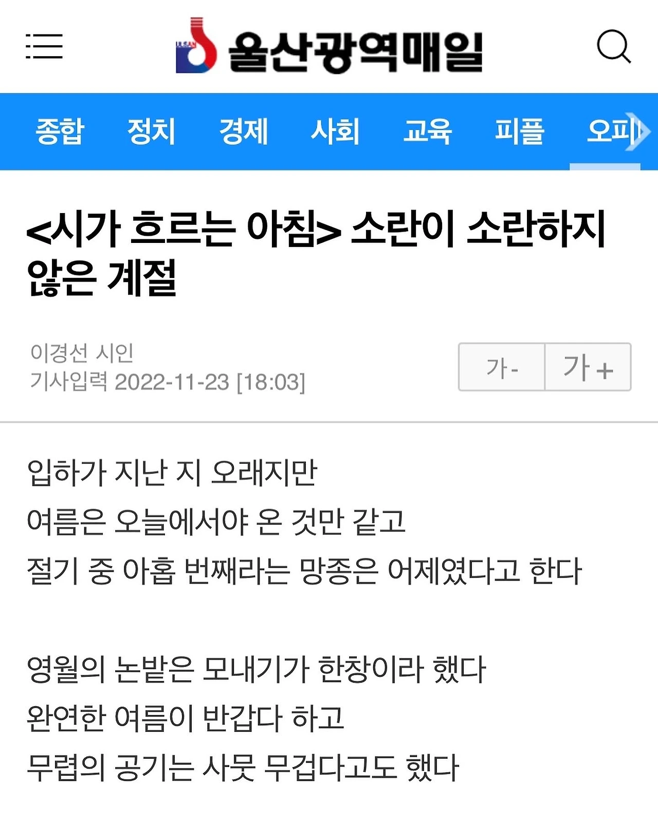 시집 '소란이 소란하지 않은 계절'의 대표작과 함께