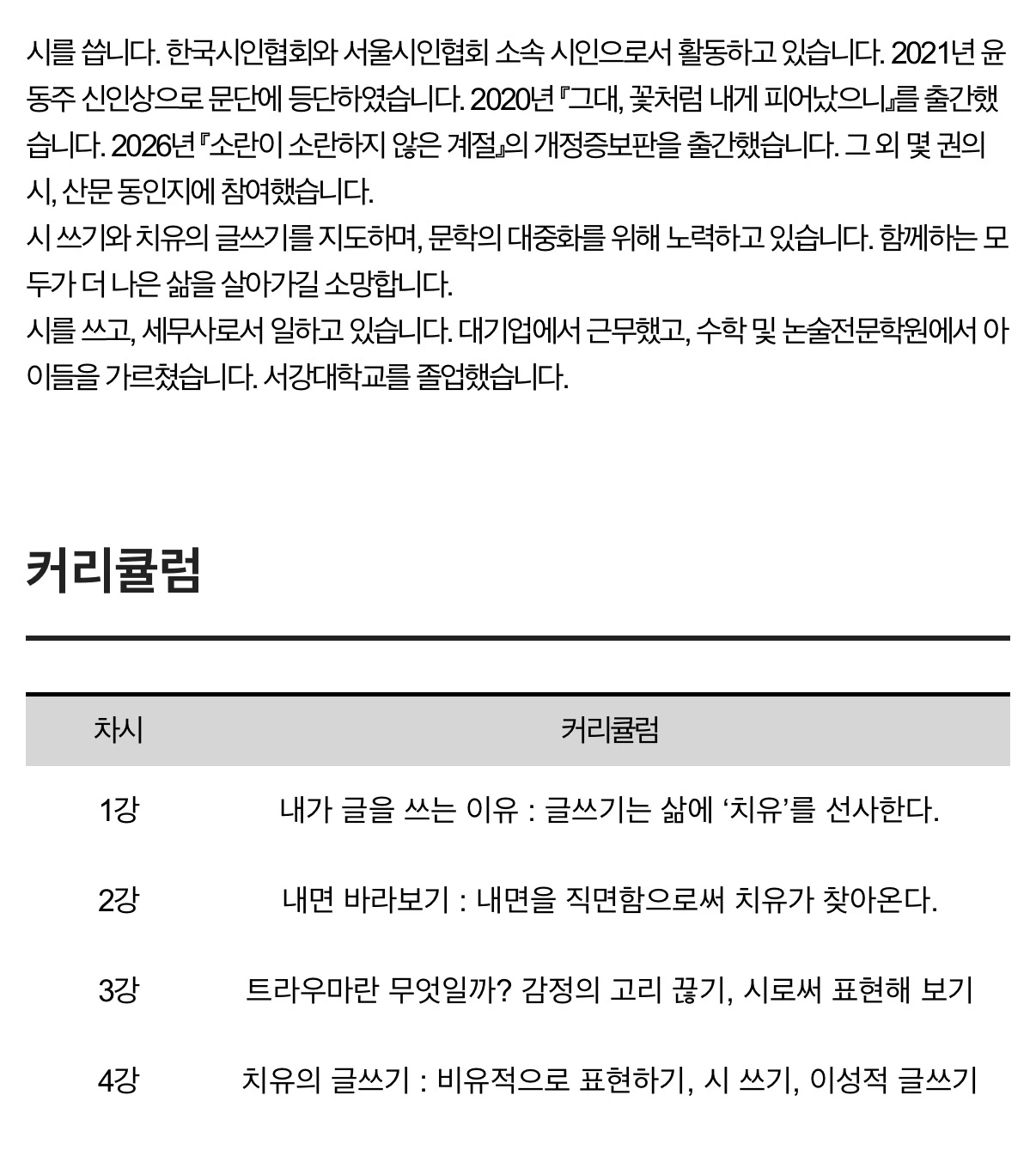 ‘치유의 글쓰기’ 수업을 진행하게 되었습니다.