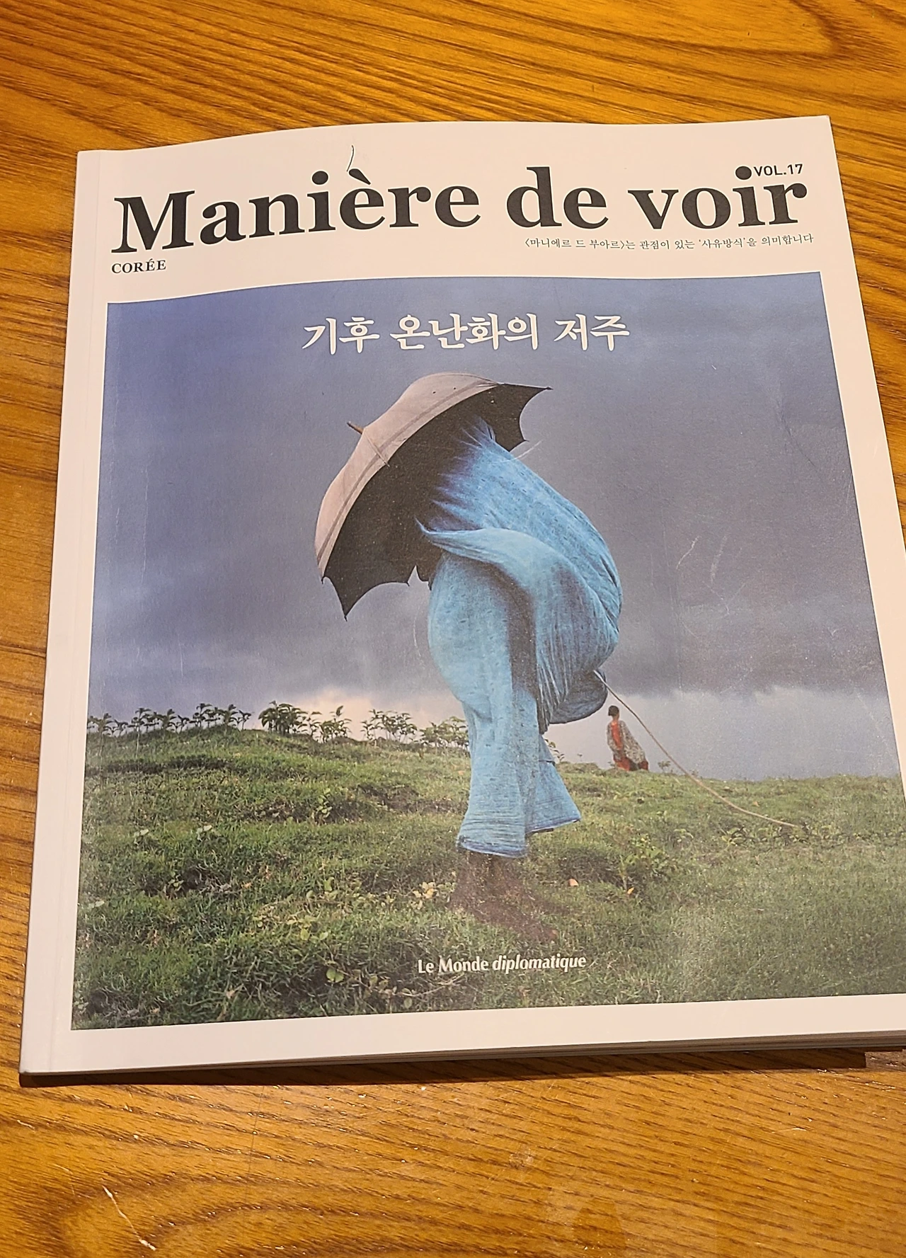 <마니에르 드 부아르> 17호는 기후 온난화를 조명한다. 온난화라는 단어는 지구의 더워짐이 기후 위기의 본질이자, 이를 해결하는 것만이 지구의 미래를 지키는 방향임을 뜻한다. 1부를 통해 지구촌 곳곳에서 벌어지는 환경 파괴의 실태를 다루고, 2부에선 환경보전과 경제 개발 사이에서 발생하는 갈등에 대해 담았다. 심해 채굴, 석탄, 플라스틱, 셰일 가스 등 지구를 오염시키는 원인은 다양하고, 민족과 국가 간 갈등의 양상은 갈수록 복잡해진다. 이후 3부와 4부는 지구와 인간의 생존을 위해 필요한 것은 무엇이며, 앞으로의 행동에 대해 말한다. 탄소 포집 등 과학기술의 발전과 더불어 경제 체제와 정치의 변화, 그리고 개인 및 공동체의 역할에 대해 역설한다.