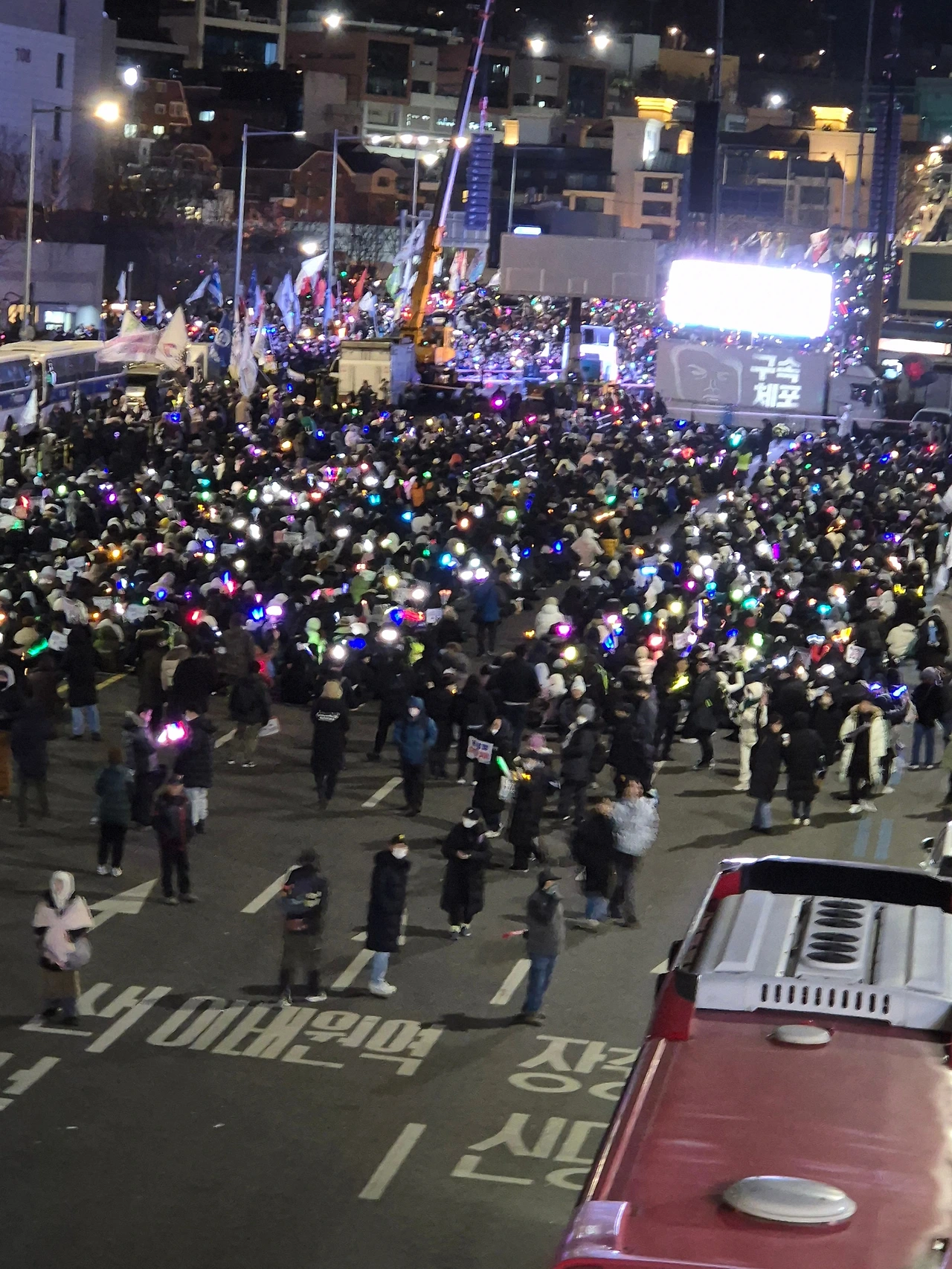 김해에서 상경한 여동생이 꼭 한남동 시위현장에서 보자고 해서 다녀왔다. 한남 오거리 쪽은 탄핵을 외치는 소리 고가도로 쪽에서는 탄핵 반대를 외치는 소리를 들었다.