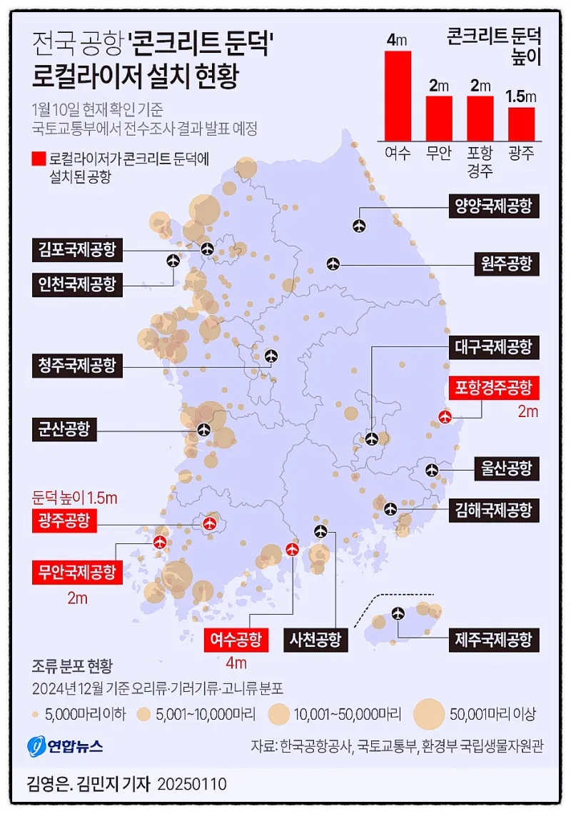 무안공항 재개가 중요한 것이 아니라 이번 참사의 반복을 막으려면, 로컬라이저부터 활주로와 수평으로 만들거나 외부 돌출이면 돈이 더 들고 유지보수비가 더 들어도 국제기준에 맞게 하라.
