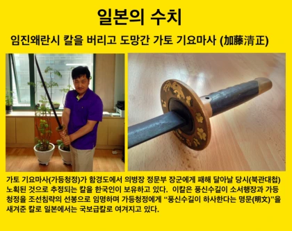 몇 년 전 일본이 수탈해 간 안견의 <몽유도원도>를 한국에 돌려주고 일본이 임진왜란에 평양성 전투에서 정문부 장군부대에 패하여 퇴각 중에 분실한 <도요토미 히데요시 하사 장검>을 일본으로 돌려주길 바란다는 설이 있었다.