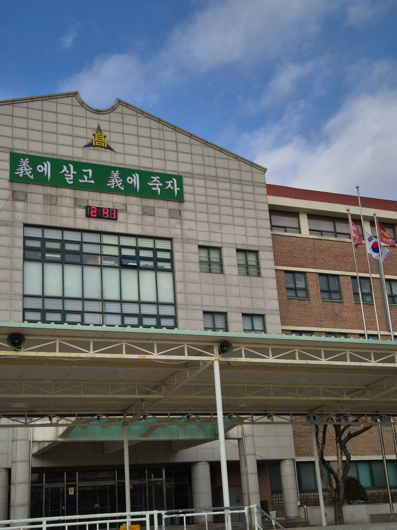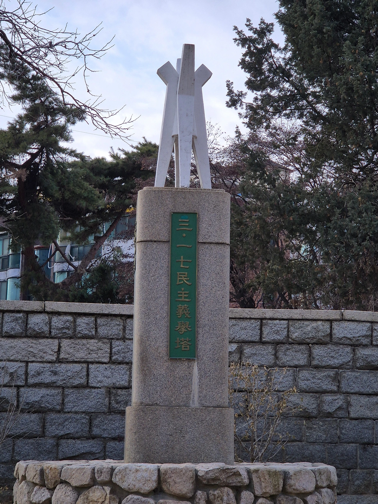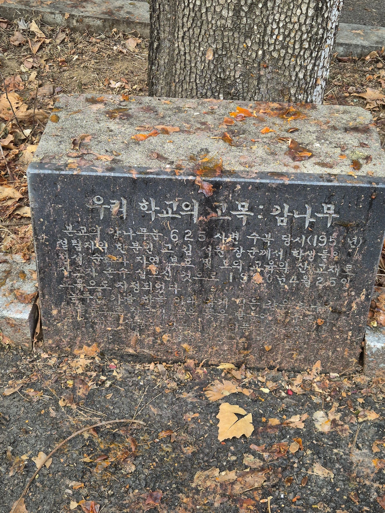 원래 설립자 김석원, 원윤수 두분 동상자리였는데, 전교조가.주동해 동상 철거하고 대체한 조형물