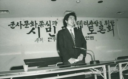 아래 사진은 월간 중앙에 <청산해야 할 군사문화>라는 글을 써 쓰다가 정보사령부 요원에게 테러를 당한 오 부장의 기자회견이다.