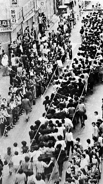 김영삼 제명에 열받은 부산시민들은 부산대학교 학생들이 유신을 반대하는 데모를 하자 진압하는 경찰에게 연탄재를 뿌렸다. 학생들이 상가로 도망가면 상인들은 셔터를 내려 학생들을 보호했다.