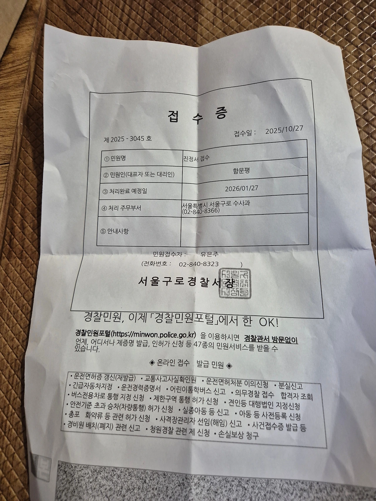 신고접수증