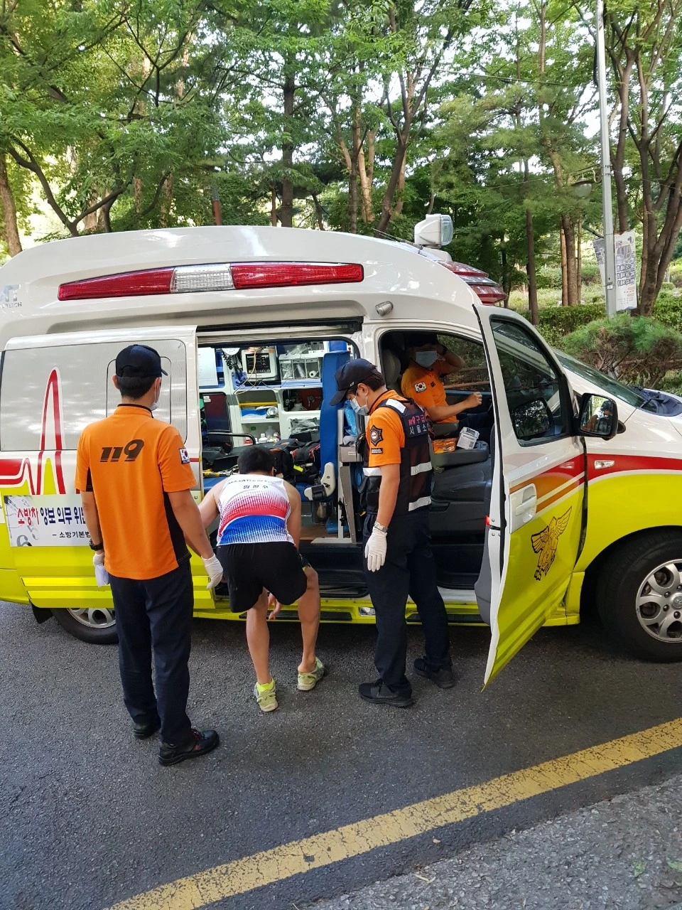 반사적으로 119 신고했다. 여기 봉화산 테마파크입구입니다. 마라톤 연습 중인 한 명이 뱀에 물렸습니다.