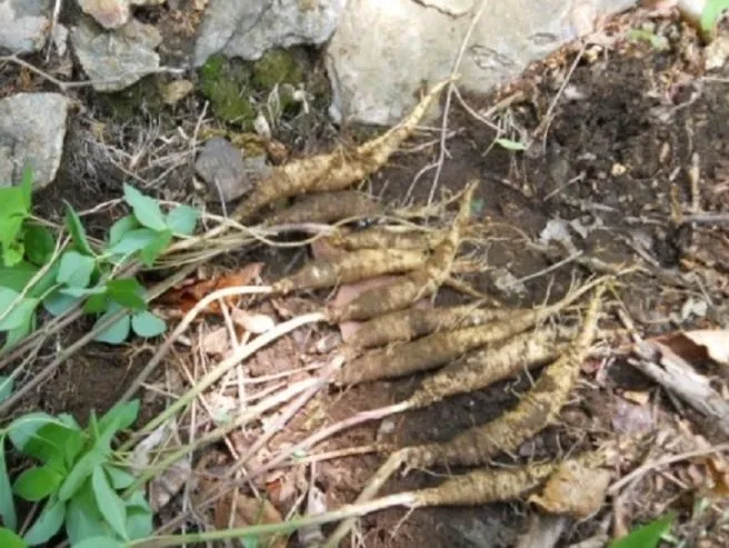 있고 몸체는 나무를 부둥켜 지탱한 욕심 많은 산채 채취 농부
