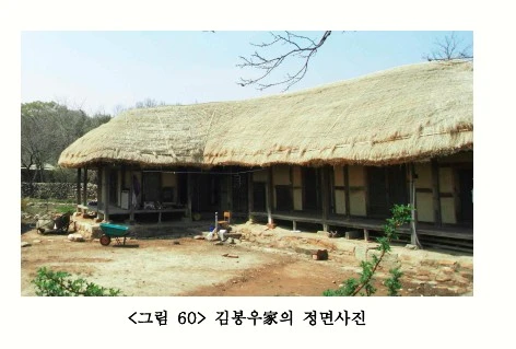 초가집 본채가 있고 소를 여러 마리 키우느라 집은 아니지만 비와 눈을 막을 수 있는 지붕이 있고 쇠여물통이 기차처럼 이어진 집이 ㄱ자로 붙어있었다.