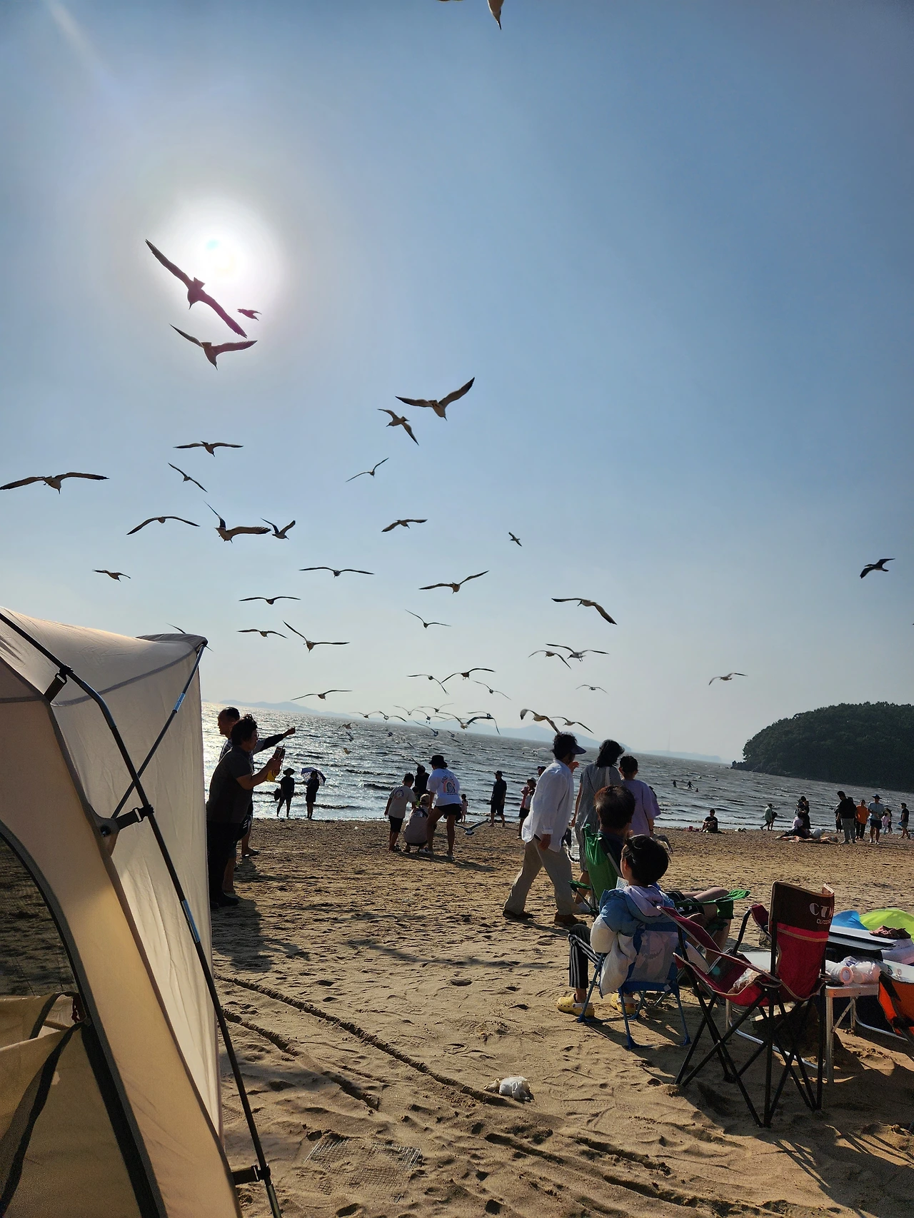 파도가 점점 거세지고 있으니 텐트를 20미터 이상 뒤로 물러나서 치고 거기는 불을 피울 수 없으니 깡통 불을 완전히 소화하고 이동하라고 했다. ㅠ ㅠ