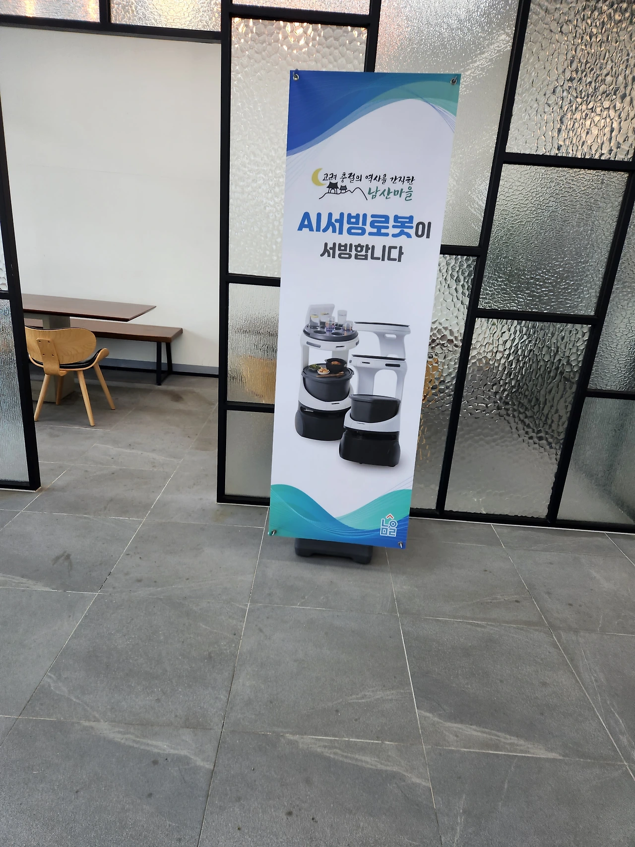 카페가 AI로봇이 서빙을 한다고 입간판이 있다.