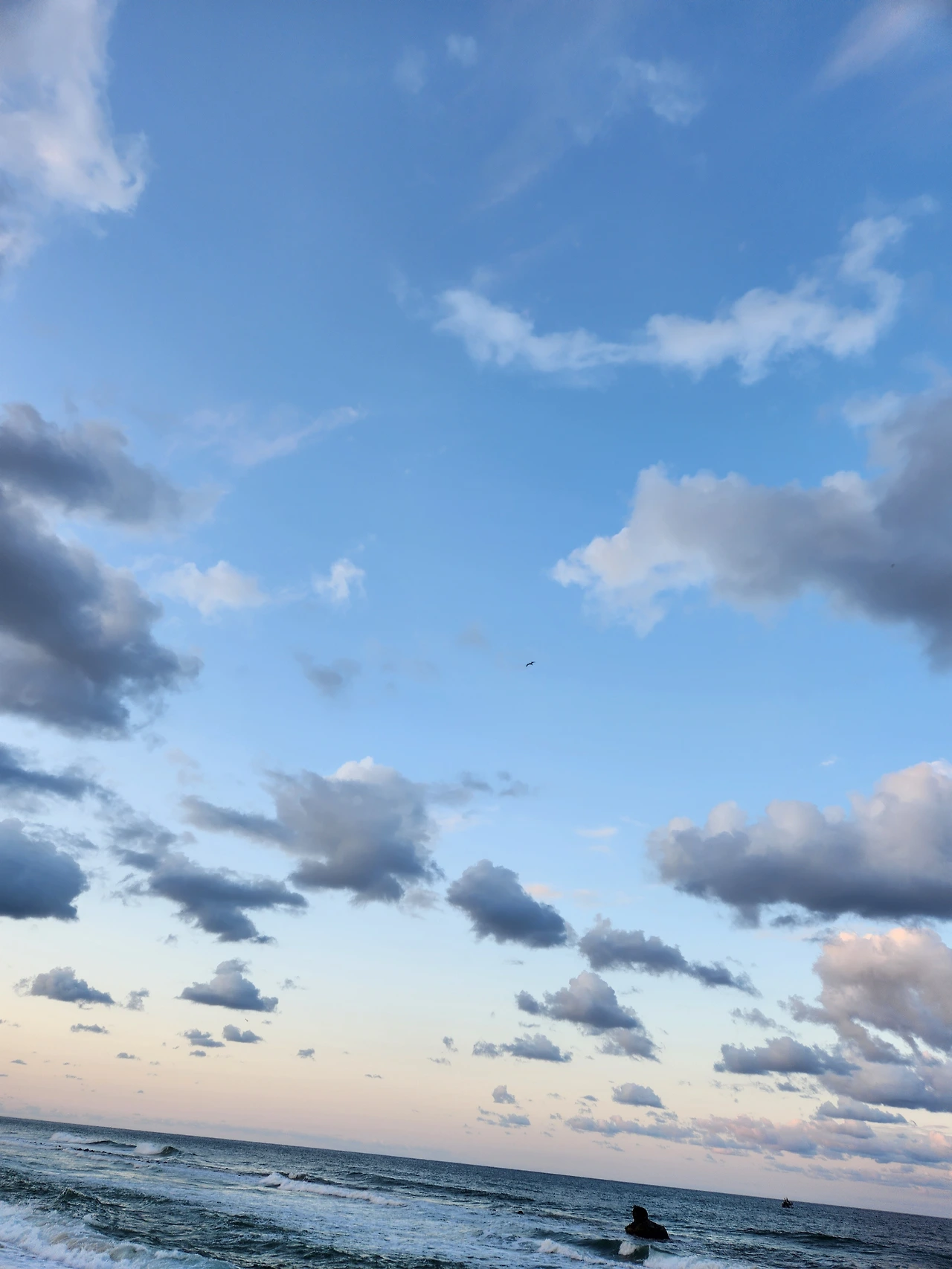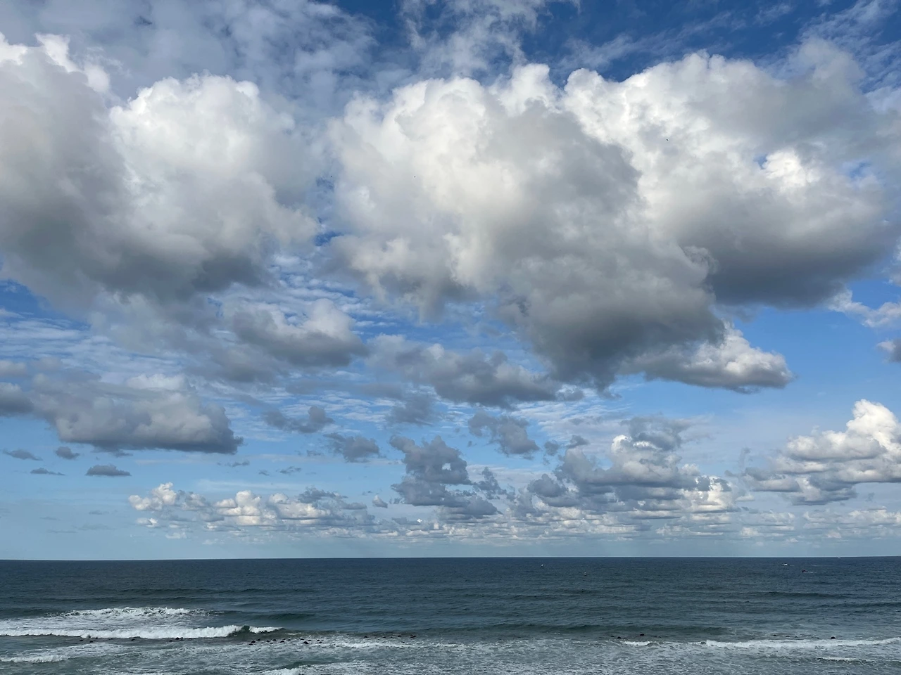 바다 위 가을 하늘 파란 바탕에 누가 캔버스에 물감을 뿌렸나 회색이 명도 차이 나게 퍼져 있고