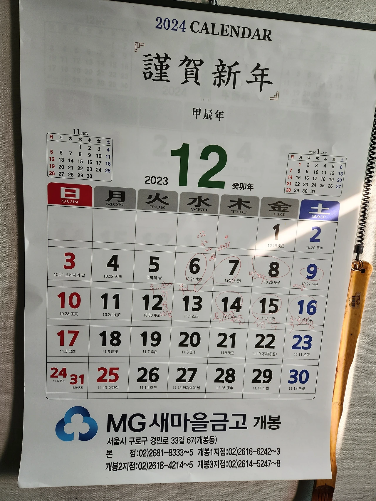새마을 금고 위기서 달력을 배부한다고 해서 털래털래 갔다.