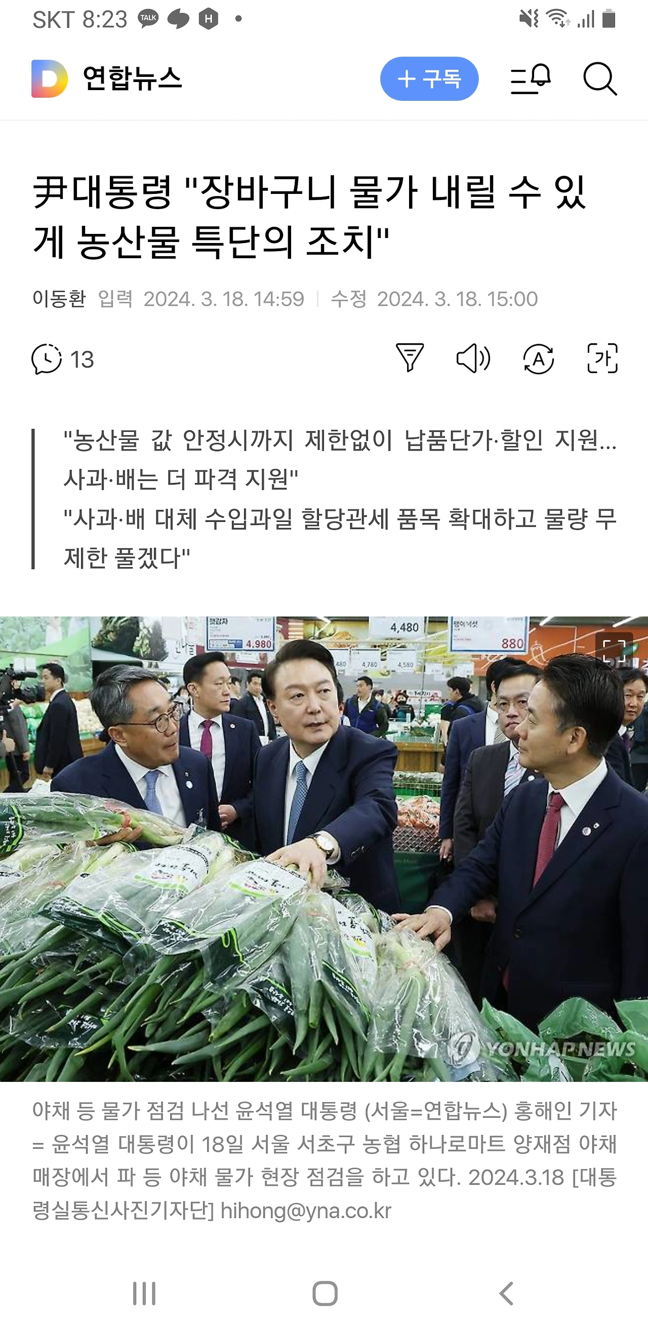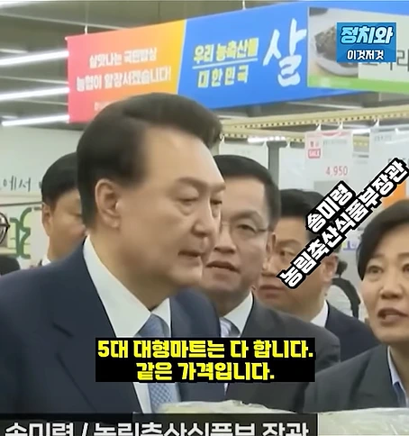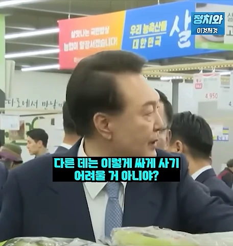 윤 총독이 모 시장에 가서 대파를 들고 놀랐다.