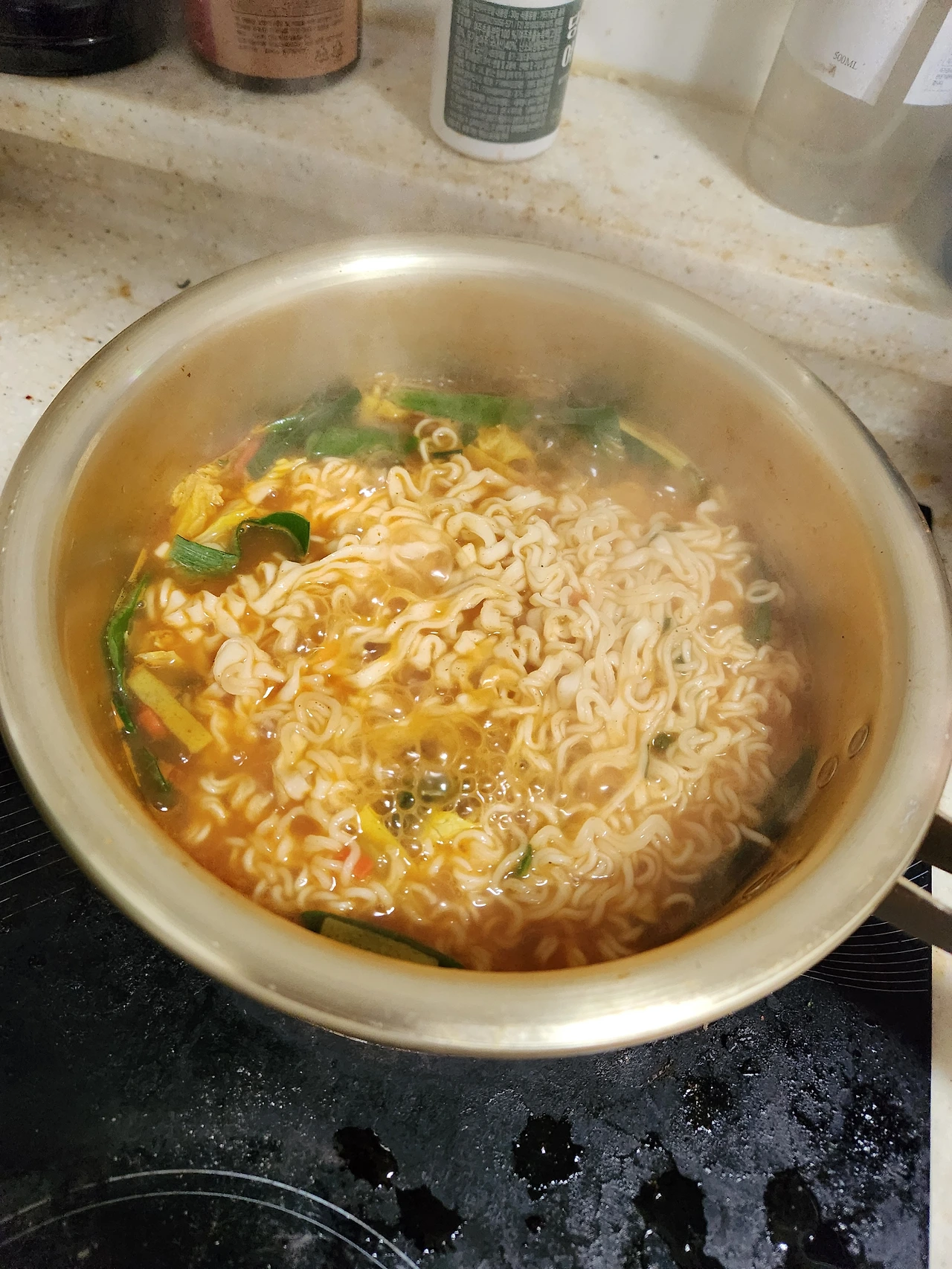 혼자 살다 보니 가능한 살림살이 부피 적게 살다 보니 밥솥도 없이 햇반과 라면 짜파게티, 칼국수로 연명했습니다.