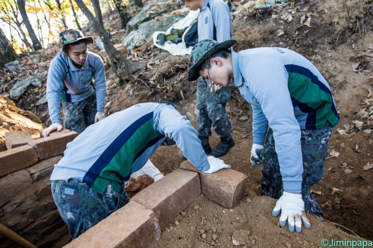 아주 오래전 중대장 시절 거점에 진지공사를 했다. 처음에는 하단에 호박돌을 쌓고 위에 흙을 덮고 떼를 입혔다.