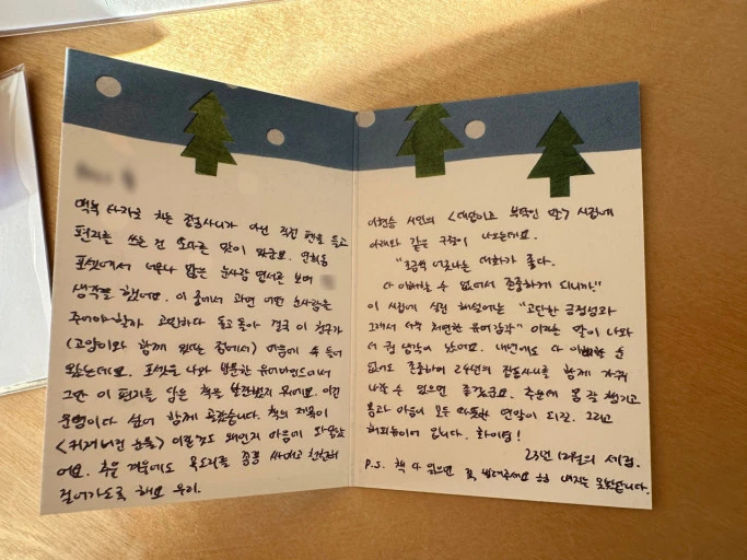 편지를 읽으면서 얼마나 눈물을 흘렸는지 몰라요. 아빠 친목계원 중에 중령으로 예편한 분이 있는데, 군인에게 시집보내려는 사람은 도시락 싸들고 가서 말린다는 분이 있는데 그분이 우리 집에서 친목계 하는 날 빠지셨다고 해요. 있었으면 말렸는데 이미 결혼식 날을 받았다기에 말리지 못한 거라고 하셨어요.